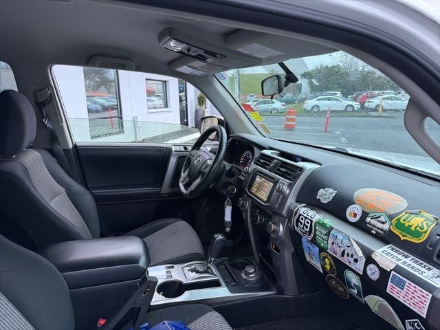 This 2018 White Toyota 4Runner TRD Off-Road 4WD is well equipped and includes these features and benefits: 4WD, Gray Cloth, 3.727 Axle Ratio, 4-Wheel Disc Brakes, 8 Speakers, ABS brakes, Air Conditioning, Alloy wheels, AM/FM radio: SiriusXM, Anti-whiplash front head restraints, Black Roof Rails, Brake assist, Bumpers: body-color, CD player, Compass, Driver door bin, Driver vanity mirror, Dual front impact airbags, Dual front side impact airbags, Electronic Stability Control, Emergency communication system: Safety Connect, Exterior Parking Camera Rear, Fabric Seat Trim, Front anti-roll bar, Front Bucket Seats, Front Center Armrest, Front fog lights, Front reading lights, Front wheel independent suspension, Heated door mirrors, Illuminated entry, Knee airbag, Leather Shift Knob, Low tire pressure warning, Occupant sensing airbag, Outside temperature display, Overhead airbag, Overhead console, Panic alarm, Passenger door bin, Passenger vanity mirror, Power door mirrors, Power driver seat, Power steering, Power windows, Radio: Entune Audio Plus, Rear anti-roll bar, Rear seat center armrest, Rear window defroster, Rear window wiper, Remote keyless entry, Roof rack: rails only, Security system, Speed control, Speed-sensing steering, Split folding rear seat, Spoiler, Steering wheel mounted audio controls, Tachometer, Telescoping steering wheel, Tilt steering wheel, Traction control, Trip computer, Variably intermittent wipers, and Wheels: 17 x 7.5 7-Spoke Unique Off-Road Alloy. 4WD, Gray Cloth.