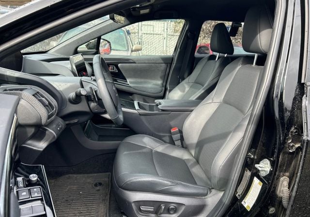 This 2023 Black Subaru Solterra Limited AWD is well equipped and includes these features and benefits: Standard Model, 11 Speakers, 13.8 Axle Ratio, 4-Wheel Disc Brakes, ABS brakes, Air Conditioning, All-Weather Floor Liners, Alloy wheels, AM/FM radio: SiriusXM, Auto High-beam Headlights, Auto-dimming Rear-View mirror, Automatic temperature control, Brake assist, Bumpers: body-color, Cargo Tray, Driver door bin, Driver vanity mirror, Dual front impact airbags, Dual front side impact airbags, Electronic Stability Control, Emergency communication system: Subaru Solterra Connect - Safety Connect (1 year trial included), Four wheel independent suspension, Front anti-roll bar, Front Bucket Seats, Front Center Armrest, Front dual zone A/C, Front fog lights, Front reading lights, Fully automatic headlights, Garage door transmitter: HomeLink, harman/kardon® Speakers, Heated door mirrors, Heated Front Bucket Seats, Heated front seats, Heated rear seats, Heated steering wheel, Illuminated entry, Knee airbag, Leather steering wheel, Low tire pressure warning, Memory seat, Navigation system: Cloud Navigation System (Subscription required), Occupant sensing airbag, Outside temperature display, Overhead airbag, Overhead console, Panic alarm, Passenger door bin, Passenger vanity mirror, Power door mirrors, Power driver seat, Power Liftgate, Power steering, Power windows, Radio data system, Radio: Subaru Solterra Connect 12.3 Multimedia System, Rain sensing wipers, Rear anti-roll bar, Rear reading lights, Rear seat center armrest, Rear window defroster, Remote keyless entry, Security system, Speed control, Speed-sensing steering, Split folding rear seat, Spoiler, StarTex Upholstery, Steering wheel mounted audio controls, Telescoping steering wheel, Tilt steering wheel, Traction control, Trip computer, Turn signal indicator mirrors, Variably intermittent wipers, and Wheels: 20 x 7.5 J Aluminum-Alloy Gray Finish.
