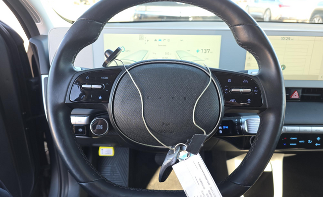 This 2024 Shooting Star (Matte Gray) Hyundai IONIQ 5 SEL AWD is well equipped and includes these features and benefits: Option Group 01, 4-Wheel Disc Brakes, 4.71 Axle Ratio, 6 Speakers, ABS brakes, Air Conditioning, Alloy wheels, AM/FM radio: SiriusXM, Apple CarPlay & Android Auto, Auto High-beam Headlights, Auto-dimming Rear-View mirror, Automatic temperature control, Bodyside moldings, Brake assist, Bumpers: body-color, Carpeted Floor Mats, Delay-off headlights, Driver door bin, Driver vanity mirror, Dual front impact airbags, Dual front side impact airbags, Electronic Stability Control, Emergency communication system: Bluelink+, Four wheel independent suspension, Front anti-roll bar, Front Bucket Seats, Front Center Armrest w/Storage, Front dual zone A/C, Front reading lights, Fully automatic headlights, Garage door transmitter: HomeLink, harman/kardon® Speakers, Heated door mirrors, Heated Front Bucket Seats, Heated front seats, Heated steering wheel, Illuminated entry, Leather steering wheel, Low tire pressure warning, Navigation System, Occupant sensing airbag, Outside temperature display, Overhead airbag, Overhead console, Panic alarm, Passenger door bin, Passenger vanity mirror, Power door mirrors, Power driver seat, Power Liftgate, Power steering, Power windows, Radio: AM/FM/SiriusXM/HD Display Audio System, Rear anti-roll bar, Rear reading lights, Rear side impact airbag, Rear window defroster, Remote keyless entry, Security system, Speed control, Speed-sensing steering, Split folding rear seat, Spoiler, Stain-Resistant Cloth Seating Surfaces, Steering wheel mounted audio controls, Telescoping steering wheel, Tilt steering wheel, Traction control, Trip computer, Turn signal indicator mirrors, Variably intermittent wipers, and Wheels: 19 x 7.5J Aero Alloy.