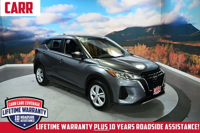 This 2024 Gun Metallic Nissan Kicks S FWD is well equipped and includes these features and benefits: 16 Steel Wheels w/Full Covers, 3.93 Axle Ratio, 6 Speakers, ABS brakes, Air Conditioning, AM/FM radio, Apple CarPlay/Android Auto, Auto High-beam Headlights, Blind Spot Warning, Brake assist, Bumpers: body-color, Carpeted Floor Mats w/Cargo Mat, Center Armrest w/Storage, Cloth Seat Trim, Door Sill Plates, Driver door bin, Driver vanity mirror, Driver's Seat Mounted Armrest, Dual front impact airbags, Dual front side impact airbags, Electronic Stability Control, Front anti-roll bar, Front Bucket Seats, Front reading lights, Front wheel independent suspension, Fully automatic headlights, Illuminated entry, Knee airbag, Low tire pressure warning, Occupant sensing airbag, Outside temperature display, Overhead airbag, Panic alarm, Passenger door bin, Passenger vanity mirror, Power door mirrors, Power steering, Power windows, Radio data system, Radio: AM/FM Audio System, Rear Parking Sensors, Rear reading lights, Rear side impact airbag, Rear window defroster, Rear window wiper, Remote keyless entry, Speed control, Splash Guards Grain (4 Piece), Split folding rear seat, Sport steering wheel, Steering wheel mounted audio controls, Tachometer, Telescoping steering wheel, Tilt steering wheel, Traction control, Trip computer, USB Charging Cable Set - Nissan, and Variably intermittent wipers. Lifetime powertrain warranty, No CARR payments for 4 months, Sign and Drive sales event!, CARR Cares Advantage up to $3100 in ownership savings, Ask us about our lifetime powertrain warranty!, One owner.